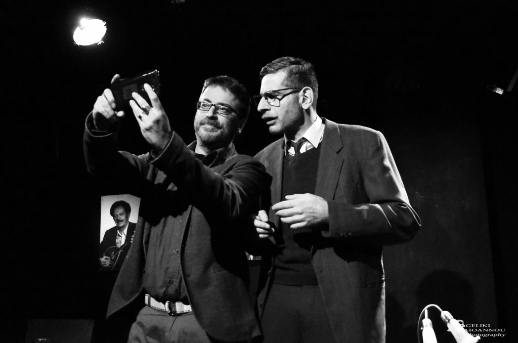 Μαζί του επί σκηνής ο Αντώνης Μποσκοΐτης ως ο interviewer του ποιητή.