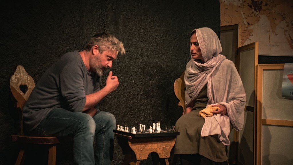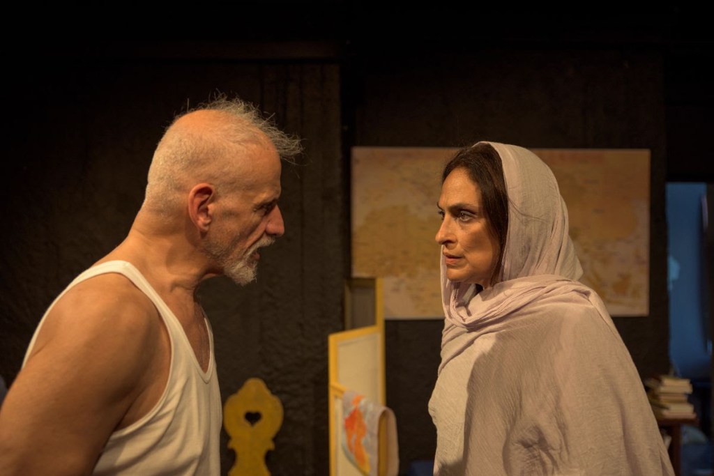 Ο Δημήτρης Γεωργαλάς, στον ρόλο του Ιρακινού Σαΐντ, σκιαγραφεί την εικόνα ενός φοβισμένου μικρού παιδιού με έντονες συναισθηματικές διακυμάνσεις που άλλοτε ξεσπά κλαίγοντας και άλλοτε καταφεύγει στην βία προκειμένου να προστατεύσει τον εαυτό του από τον φαινομενικό εχθρό. Παράλληλα, μας παραδίδει την εικόνα ενός ανθρώπου μορφωμένου και παθιασμένου με την διδασκαλία, γεγονός που κουμπώνει απόλυτα στο υπόβαθρό του χαρακτήρα που υποδύεται. Η Έλενα Τυρέα, συνθέτει μια δυναμική Ιρανή γυναίκα, η οποία έχει υιοθετήσει μια οπτική της ζωής που εμπερικλείει σε μεγάλο βαθμό την τρυφερότητα και τη στοργή για τους ανθρώπους. Μια στάση που αλλάζει στην πορεία του έργου κάνοντας την ζυγαριά να γέρνει προς την αγανάκτηση απέναντι στο γεγονός ότι κανένας δεν την υπολογίζει και που την βοηθάει να δώσει μια εξαιρετικά εύστοχη κορύφωση στον ρόλο της. Ο Αυγουστίνος Ρεμούνδος, στον ρόλο του Ξένου, περνάει από τον ρόλο του θύματος στον ρόλο ενός αινιγματικού θύτη που θα κάνει τα πάνταγια να κερδίσει την καρδιά της Χαγιάτ. Ένας άνθρωπος που κυβερνάται απόλυτα από τα πάθη του και τα βίαια παιδικά του χρόνια.
