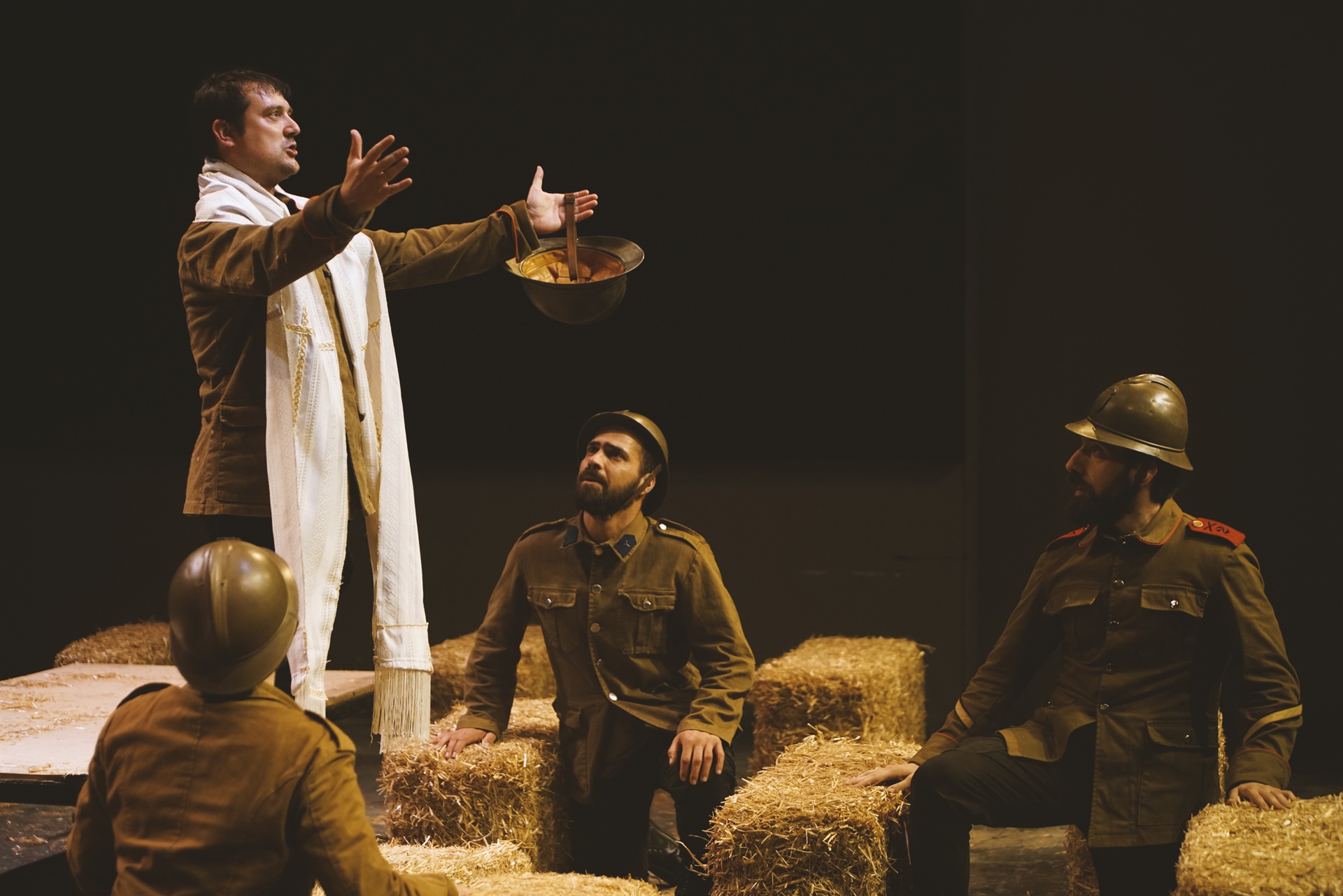 Ο Μάρκος Γέττος δημιουργεί έναν ευαίσθητο χαρακτήρα, ο οποίος περνά από την αθωότητα ενός μικρού παιδιού στην ψυχρή απελπισία ενός ευφυούς ανθρώπου που έχει αγανακτήσει συνειδητοποιώντας ότι η ζωή του κρέμεται από την κλωστή της αναλγησίας του κράτους. Ο Βασίλης Καλφάκης ερμηνεύει τον ρόλο, αξιοποιώντας το βλέμμα του και την επιφυλακτικότητά μπροστά στη συνεχώς αυξανόμενη φιλοδοξία του στρατεύματος, κατασκευάζει μια σύνθετη φιγούρα που ακροβατεί μεταξύ του τρόμου για την επερχόμενη συντριβή και του πανικού όσον αφορά την απώλεια της προσωπικότητάς του. Ο Κώστας Κουτρουμπής αναδεικνύει τις κρυφές πτυχές ενός συναισθηματικού και συντηρητικού οικογενειάρχη, ο οποίος είναι έτοιμος να κάνει τα πάντα για την οικογένεια του, ακόμα και να αντισταθεί στον αξιωματικό του στρατεύματος. Ο Τάσος Τζιβίσκος φέρει στην σκηνή την αυταρχικότητα του ηγέτη και του ανθρώπου που έχει χάσει το μέτρο και πλέον καταφεύγει σε σπασμωδικές κινήσεις, καταπατώντας κάθε ηθική αξία. Στον αντίποδα, η Ανθή Φουντά ενώ καταφέρνει να εισχωρήσει στη συναισθηματική κατάσταση του ρόλου της, καταφεύγει σε μερικές κινησιολογικές υπερβολές και η ταχύτητα του λόγου της, φαίνεται να επιβραδύνει τον ρυθμό της παράστασης.