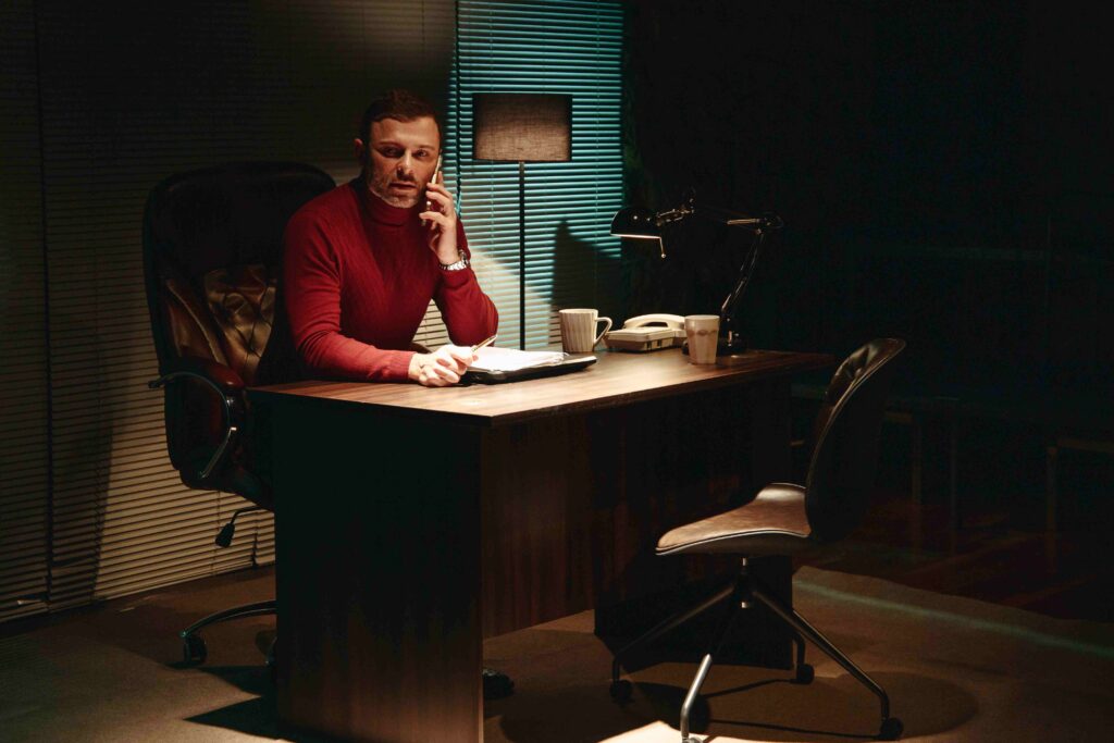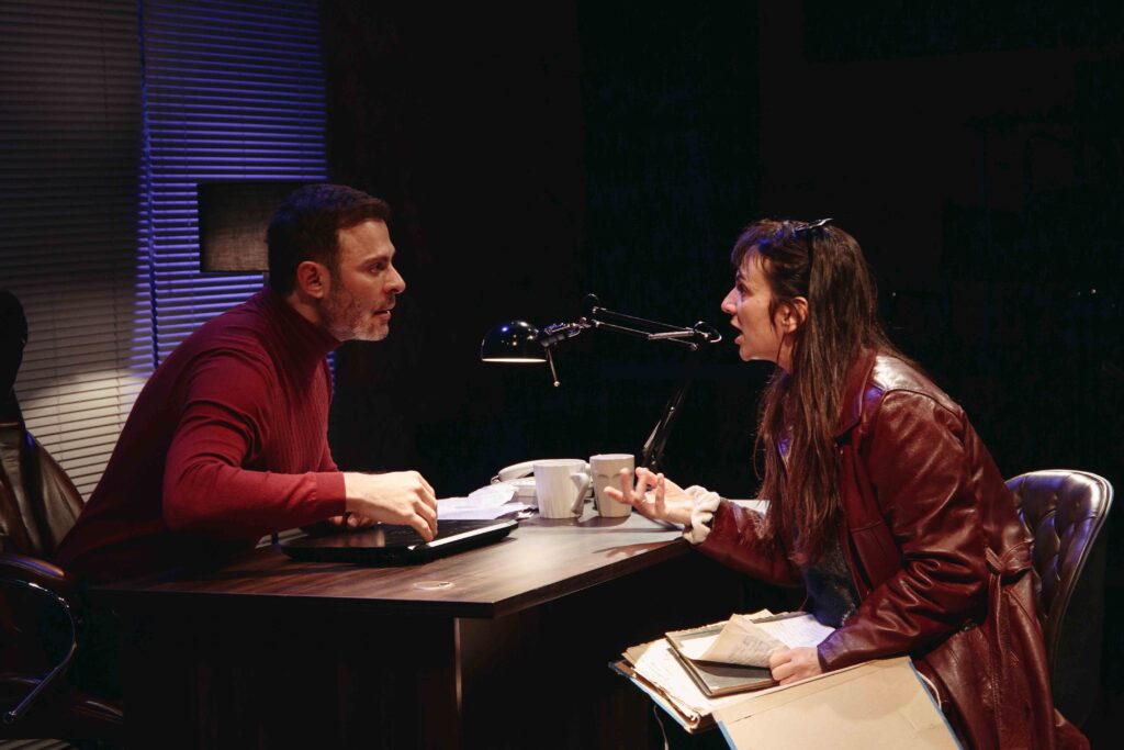 Ο Γιώργος Παπαπαύλου, κρυμμένος πίσω από την καπαρντίνα του σοβαρού και μετρημένου εκδότη, καταθέτει μια ερμηνεία που βουτάει στην παράνοια της παιδικής ηλικίας, στοχεύοντας στην εξυγίανση της συναισθηματικής του αναπηρίας. Κατ’ αυτόν τον τρόπο, σκιαγραφεί έναν χαρακτήρα που πνίγει την ενοχή του μέσα στο συνεχώς νευρικό βλέμμα του – ένα παιδί που ζητά επίμονα εκδίκηση.