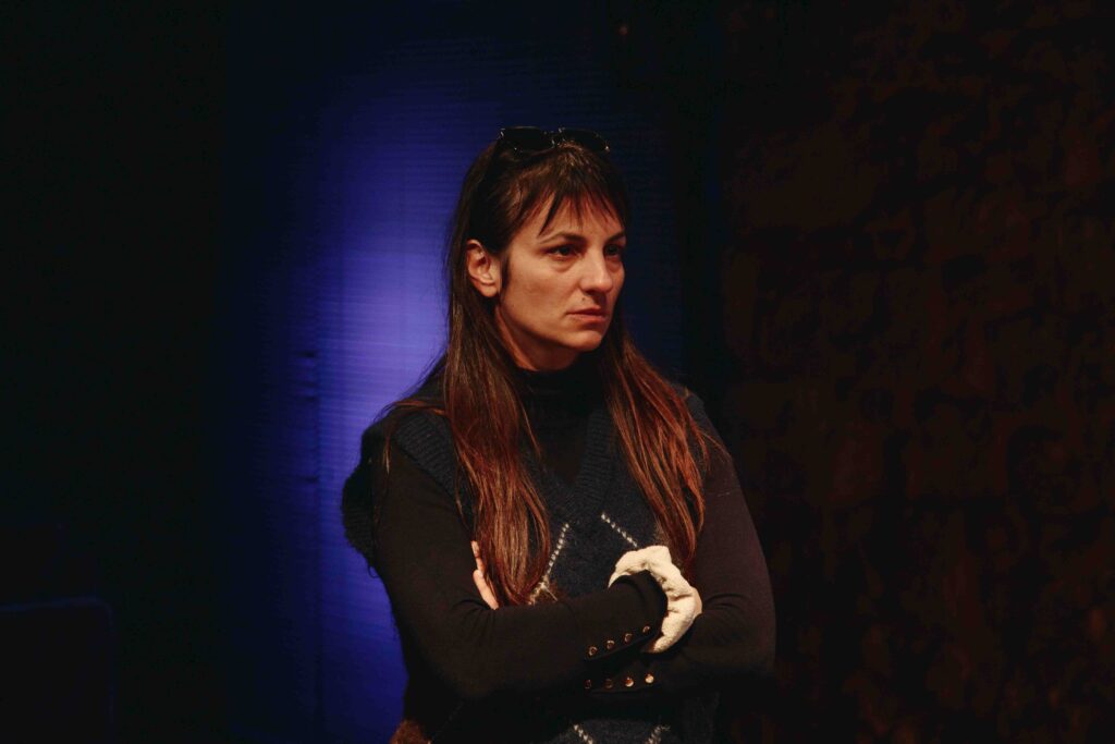 Η Ελένη Στεργίου, ως Άντρια, συνθέτει την πιο γήινη από τις τρεις μορφές, κρατώντας τις ισορροπίες μεταξύ δυναμισμού και ανασφάλειας. Μια φιγούρα που γκρεμοτσακίζεται από το βάθρο στο οποίο θεωρεί ότι βρίσκεται, βιώνοντας την άλλη πλευρά της καταιγίδας.