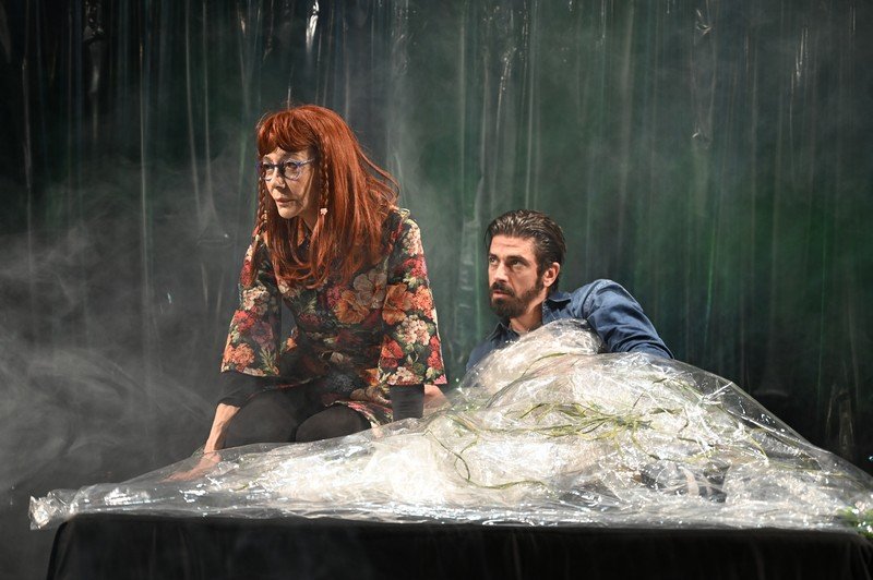 Η ρηξικέλευθη σκηνογραφία της Νίκης Ψυχογιού, απαρτιζόμενη από πλαστικά καλύμματα στα οποία περιέχονται εγκλωβισμένα τα ψήγματα πρασίνου, εστιάζει στους πνιγηρούς ρυθμούς της πόλης, που δεν επέτρεπαν έως τώρα στους δύο εραστές να εκδηλώσουν την καταπιεσμένη φύση τους. Κομβική στη δημιουργία της επιβλητικής ατμόσφαιρας είναι και η απαλή μουσική σύνθεση του Θοδωρή Αμπαζή, που αγκαλιάζεται εξαίσια από τη βελούδινη φωνή της Βάσιας Παππά.