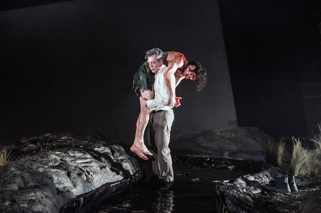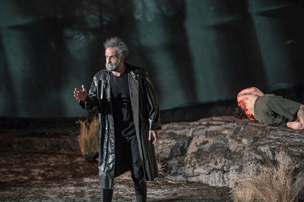 Στην ιδέα του υγρού τάφου στηρίζεται η άρτια εικαστικά σκηνογραφία της Εύας Μανιδάκη που τοποθετεί την δράση γύρω από έναν σκοτεινό βάλτο. Ο Χορός των γυναικών (Δάφνη Κιουρκτσόγλου, Αναστασία-Ραφαέλα Κονίδη, Αμαλία Νίνου, Μελίνα Πολυζώνη) και ο Χορός των ανδρών (Γιώργος Βασιλόπουλος, Κωνσταντίνος Γεωργαλής, Νίκος Γονίδης, Χρήστος Διαμαντούδης, Ηρακλής Κωστάκης, Αλέξανδρος Πιεχόβιακ, Μάριος Χατζηαντώνη, Νικόλας Χατζηβασιλειάδης), αν και αρκετά περιορισμένοι δραματουργικά, συμβάλλουν σημαντικά στην ανάδειξη του ψυχολογικού υποβάθρου των ηρώων κατά την διάρκεια του έργου, μέσα από μια έντονη σωματικότητα. Στην ανάδειξη της συναισθηματικής κατάρρευσης των χαρακτήρων συνεισφέρουν επίσης και οι αινιγματικές μελωδίες του Αλέξανδρου Δράκου Κτιστάκη.