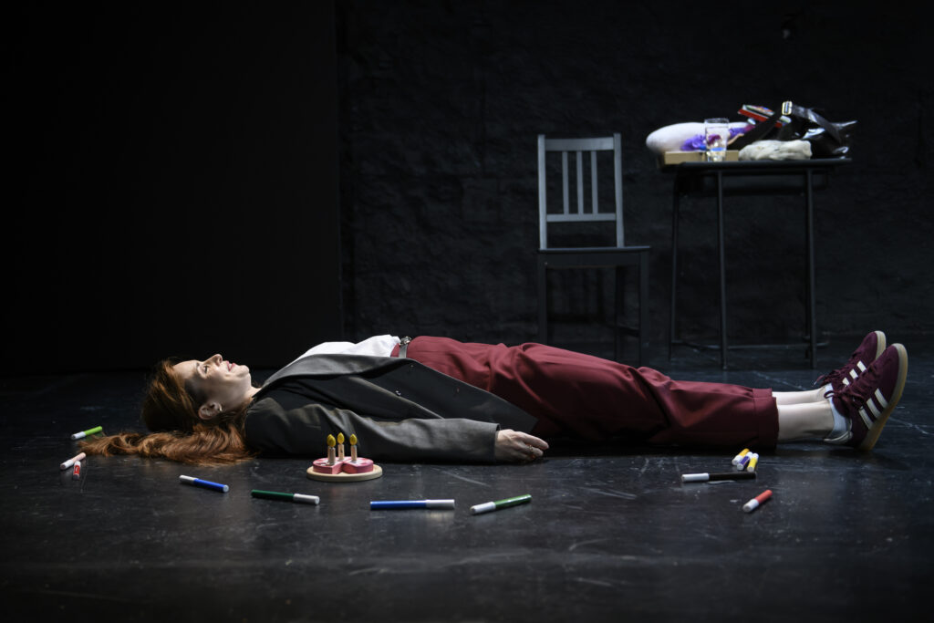 Συνδυάζοντας μια πληθώρα αφηγηματικών τεχνικών – από το τραγούδι και την παιχνιδιάρικη κίνηση έως τη στατική διήγηση και τη γλαφυρή απόδοση εικόνων που προβάλλονται μέσω επιδιασκοπίου – η Ζωή Ξανθοπούλου αποτυπώνει με εφευρετικότητα τη συναισθηματική πυκνότητα του έργου. Τοποθετώντας τον καθάριο τραυματισμένο παιδικό εαυτό της ηρωίδας στο ενήλικο σώμα της, δημιουργεί ένα διάγραμμα εξέλιξης της ανθρώπινης ψυχής μέσα από την αποδοχή και, κατ’ επέκταση, την επούλωση του τραύματος. Σκηνικά αντικείμενα (Γιώργος Λιντζέρης), βγαλμένα από παιδικό δωμάτιο, και μουσική (Σπύρος Γραμμένος) εναρμονισμένη με τη διάθεση του έργου, δημιουργούν έναν ζεστό μανδύα που τυλίγει όμορφα την ευαισθησία της γραφής του Raschke.