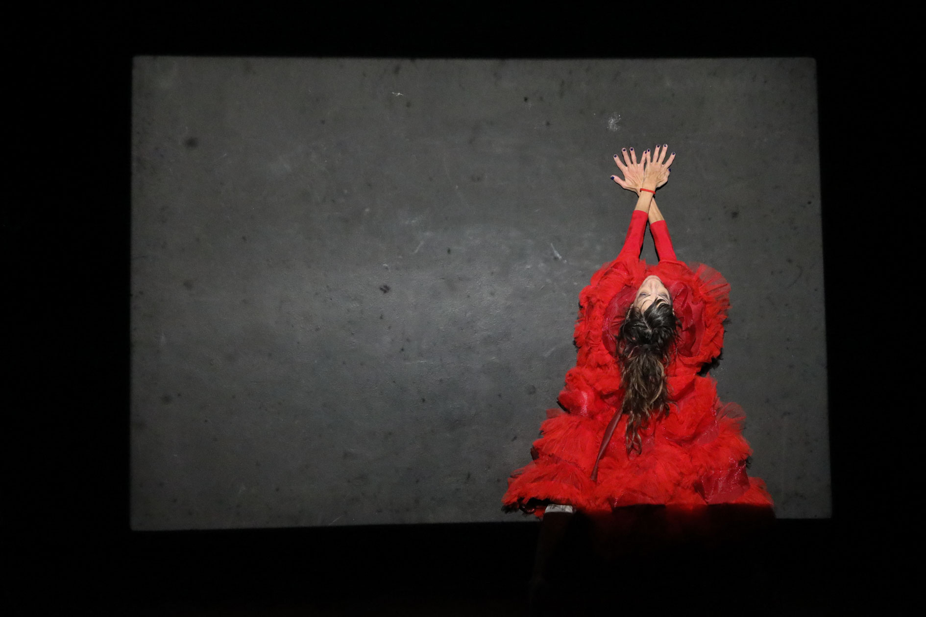Στην καρδιά του σκοτεινού αυτού παραμυθιού βρίσκεται η Γαβριέλλα Ανυφαντάκη, η οποία με το σώμα και την κίνησή της γίνεται καμβάς, εργαλείο και φωνή. Η ερμηνεία της ενσαρκώνει με ποιητική δύναμη τις παραμορφώσεις της γυναικείας εικόνας, αλλά και τη δυνατότητα της αναγέννησής της, αποκαλύπτοντας την αναζήτηση μιας αυθεντικής γυναικείας φωνής.