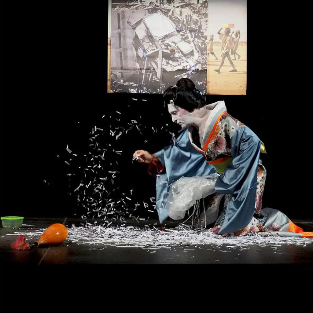 Ξεκινώντας με τη λεπτότητα της ιαπωνικής τελετουργίας του τσαγιού, η γκέισα Κικουνοχάνα μάς αποκαλύπτει σιγά σιγά τις σκοτεινές όψεις της σύγχρονης πραγματικότητας, από τις ζωές που θυσιάζονται για την καθημερινή μας άνεση έως την τεχνολογία και την ψευδαίσθηση της αθωότητας. Η αυστηρά δομημένη τελετή γίνεται μια γλυκόπικρη, διαδραστική εμπειρία που φέρνει στο προσκήνιο ζητήματα εμπορίας και κατανάλωσης ψυχών. Εσείς, θα πάρετε τσάι;