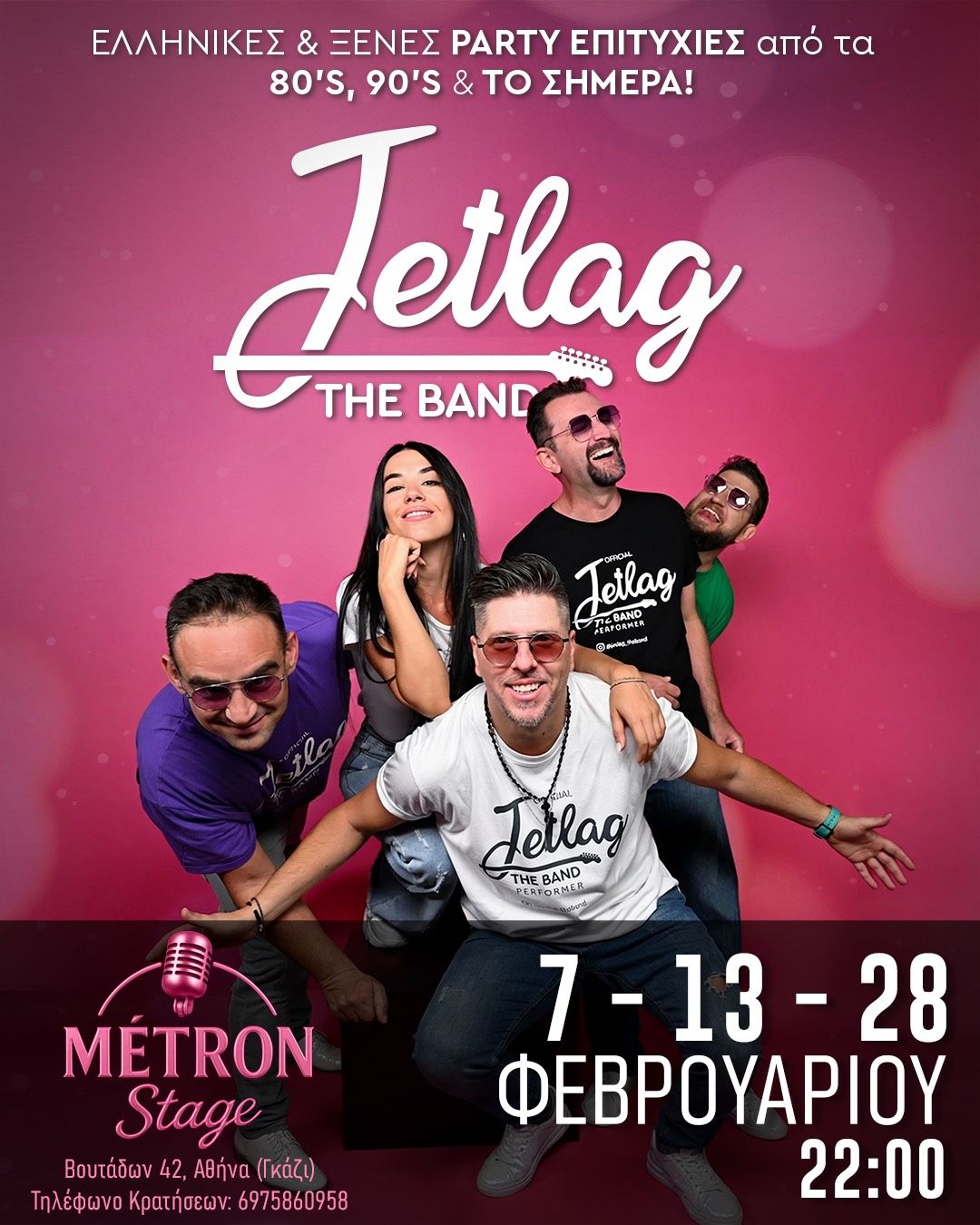 - 7, 13 & 28 Φεβρουαρίου Ι Jetlag The Band Ι Ώρα έναρξης: 22:00 Ι Είσοδος: 10€
