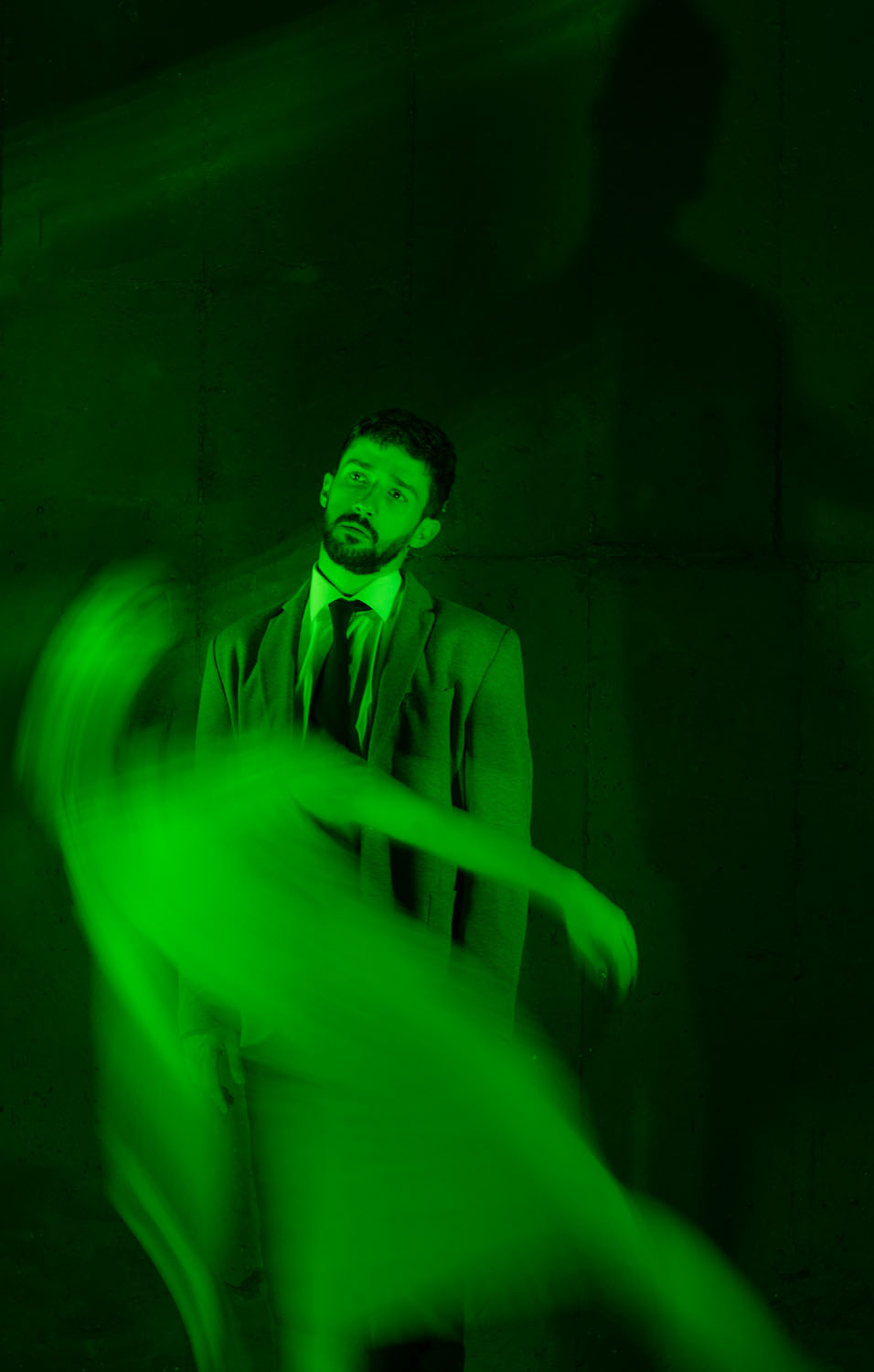 Τα δύο πρόσωπα του έργου ερμηνεύονται ανεπιτήδευτα από τη Φλώρα Καραβελατζή και τον Βασίλης Τσαλίκης. Ειδικότερα, η Φλώρα Καραβελατζή σκιαγραφεί μια γυναίκα, που προσπαθεί να κρύψει πολλές φορές τις δικές της ανασφάλειες και ρωγμές πίσω από την επιθετικότητα και την ειρωνεία. Στον αντίποδα, ο Βασίλης Τσαλίκης, μέσα από μια ευεργετική ερμηνευτική λιτότητα, συνθέτει έναν ήρωα που αρχικά επιχειρεί να διεκδικήσει τον χώρο του μέσω της λογικής, στοιχείο που δημιουργεί εύστοχη αντίθεση με τη συναισθηματική προσέγγιση του φινάλε.