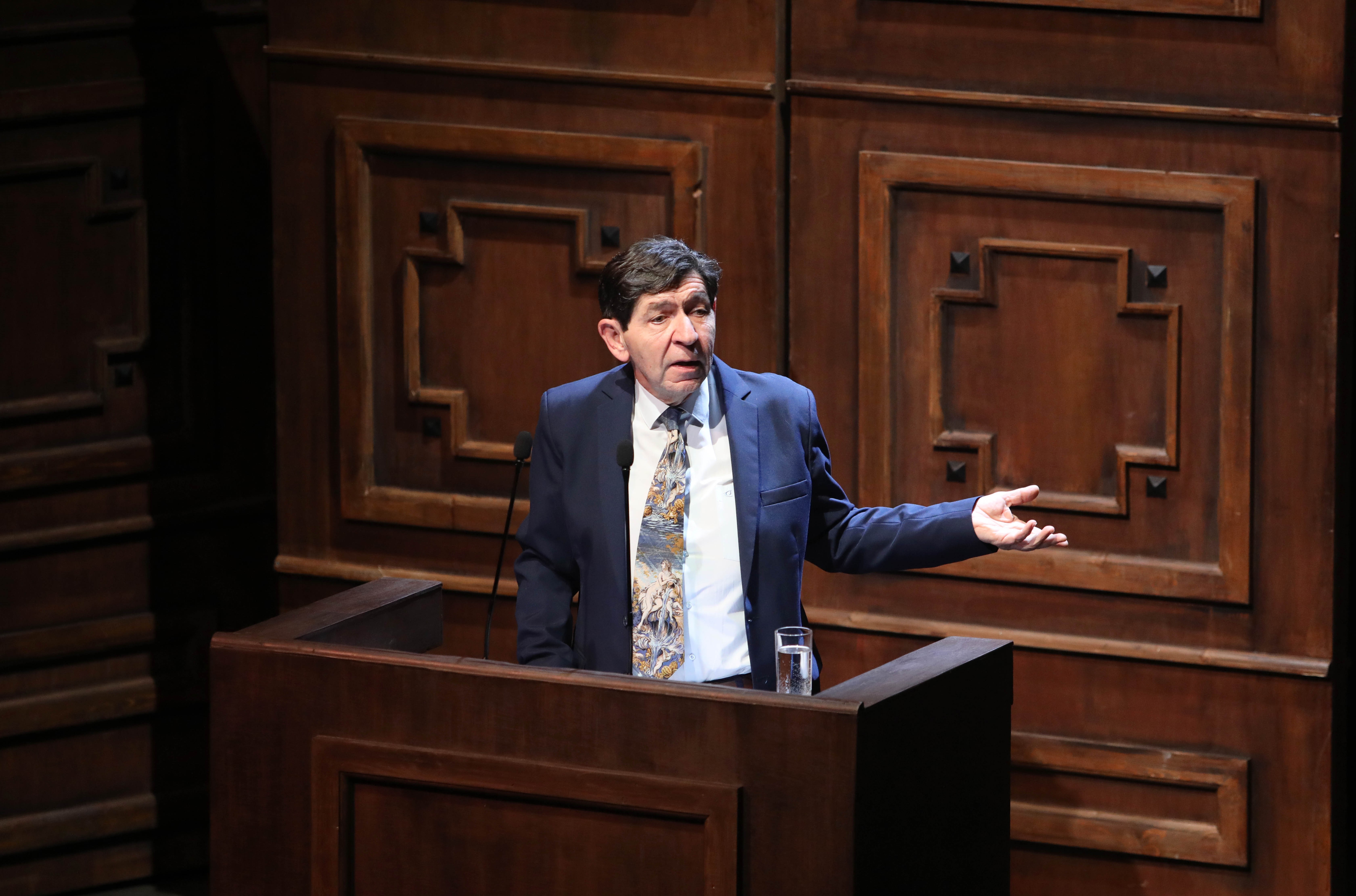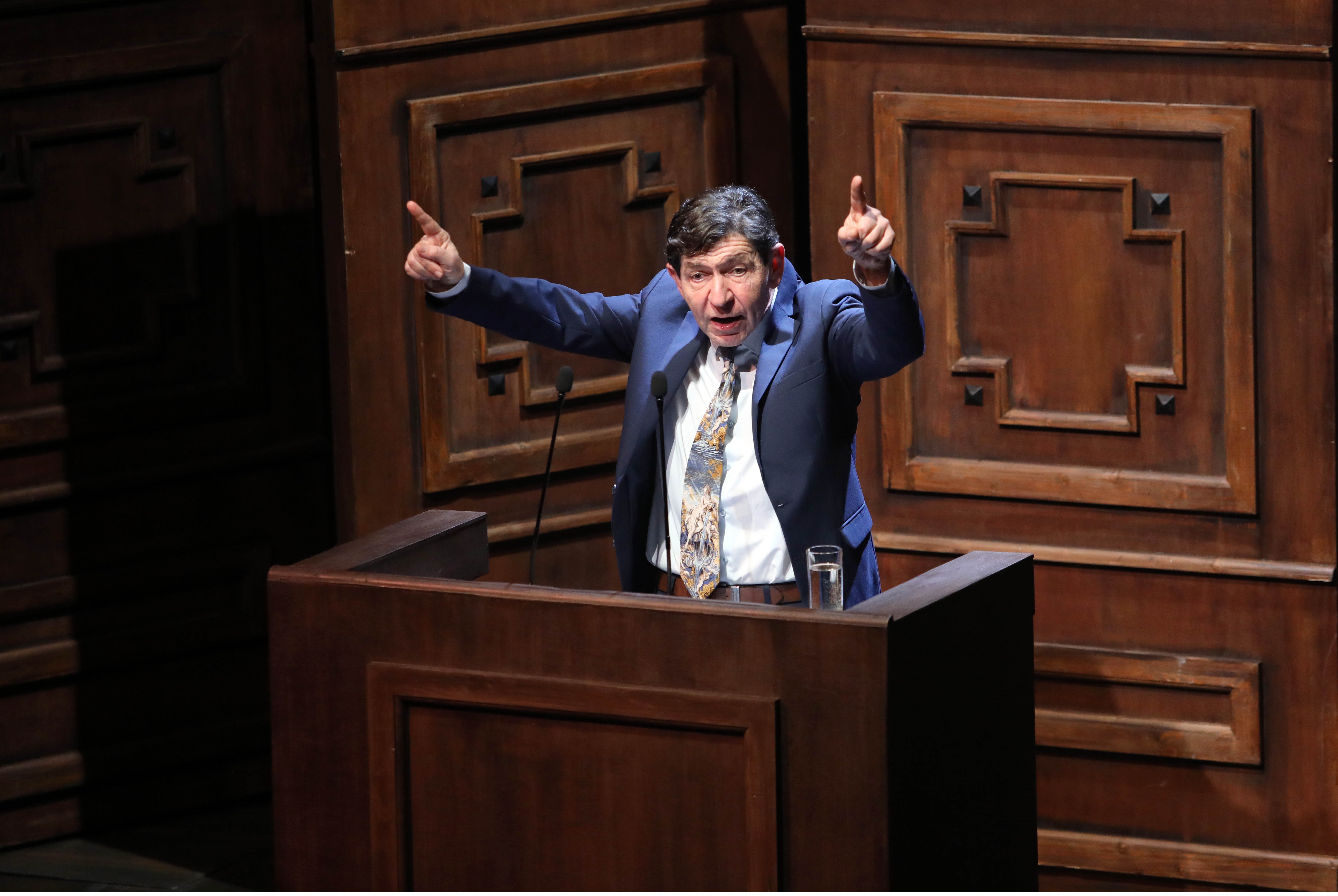 Ο Γεράσιμος Σκιαδαρέσης είναι συγκλονιστικός, σαρωτικός και χειμαρρώδης. Αφοπλιστικά φυσικός στην εκφορά λόγου, αληθινός, πειστικότατος και καίριος.