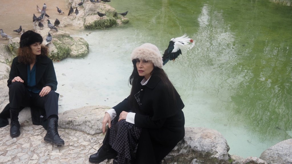 Η επιγραφή πάνω στην προθήκη εξηγεί: δύο γυναίκες ηθοποιοί παίζουν το έργο «Η πολιορκία του Λένινγκραντ», την ιστορία δύο ηθοποιών που αγωνίζονται να σώσουν το τελευταίο Οχυρό, το Θέατρο των Φαντασμάτων. Μια ιστορία κωμικοτραγική.