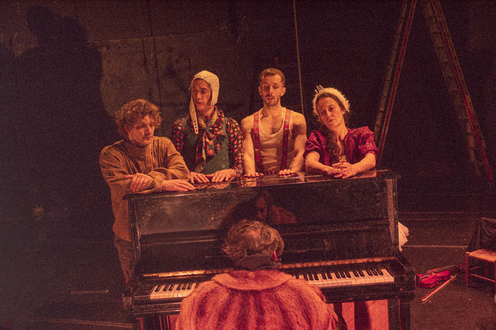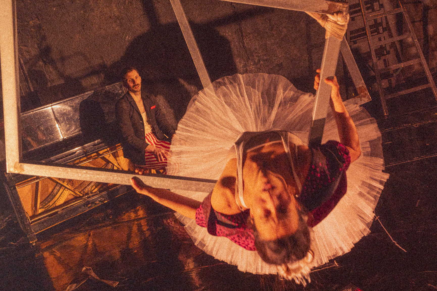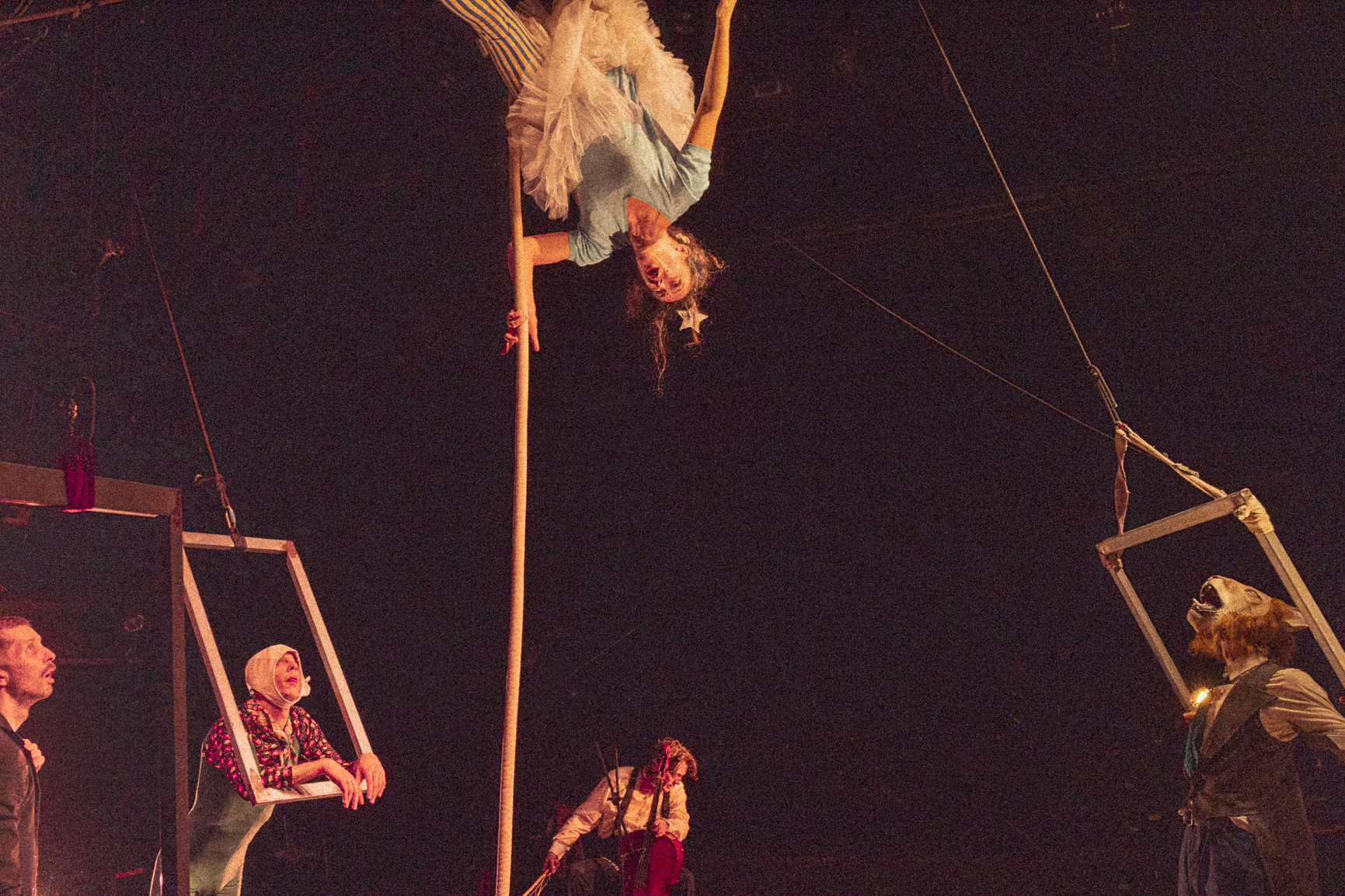 Τα άλλα τέσσερα μέλη του θιάσου όμως αποδεικνύονται ανεπαρκή, τόσο στα καθήκοντά τους απέναντι στο τσίρκο, όσο και στην εκτέλεση της υψηλής μουσικής σύνθεσης. O ανιψιός του ο Θηριοδαμαστής υποχρεώνεται να μπει στο θίασο επειδή έτυχε να παίζει πιάνο, μετά τον θάνατο του προκατόχου του που κατασπαράχθηκε από τις λεοπαρδάλεις. Η Εγγονή του, ένα κορίτσι στην εφηβεία, υποχρεώνεται να πάρει τη θέση της σκοτωμένης ακροβάτισσας μητέρας της στο τεντωμένο σκοινί και να παίξει βιόλα. Ο Κλόουν αντιμετωπίζει ένα πρόβλημα με το σκουφί του: πρέπει να του πέφτει όταν βρίσκεται στην πίστα, αλλά να μην του πέφτει όταν παίζει κοντραμπάσο. Και ο Ζογκλέρ δεν κατορθώνει να σηκώσει πάνω από δεκαοχτώ πιάτα και, παρότι παίζει βιολί από παιδί, μοιάζει να το σιχαίνεται.