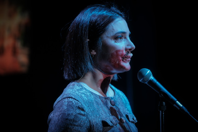Αίματος» μεταφέρει τον μύθο στο σήμερα, μέσα σε ένα πολιτικό και ανθρώπινο τοπίο που καθορίζεται από τον πόλεμο, την εξουσία, την απώλεια και τον αδιάκοπο κύκλο της βίας. Μέσα από κινηματογραφικές εικόνες, ζωντανή σκηνική δράση και μαρτυρίες εκτόπισης, η Κλυταιμήστρα εμφανίζεται ως μια γυναίκα που έχει χάσει τα πάντα και επιστρέφει αναζητώντας δικαιοσύνη.