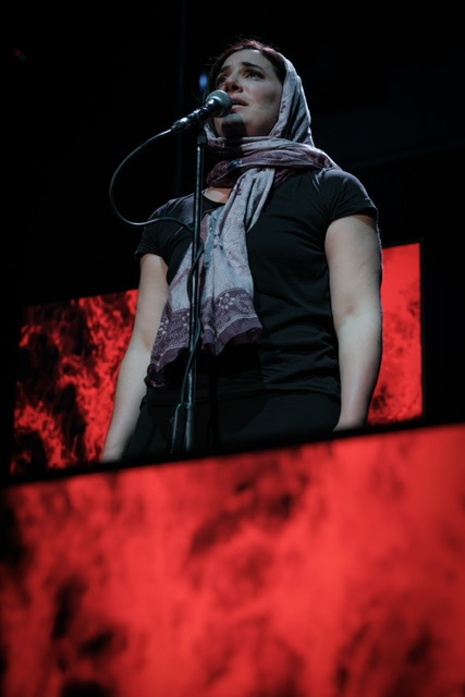 Η παράσταση αξιοποιεί τη φόρμα του cinematic theatre, συνδέοντας την αρχαία τραγωδία με το κατεπείγον παρόν. Με κινηματογραφική αφήγηση, ζωντανή ερμηνεία, πραγματικές ηχητικές καταγραφές από εμπόλεμες ζώνες της Μέσης Ανατολής και τεκμήρια εκτόπισης, δημιουργεί μια σκηνική εμπειρία όπου ο μύθος του Αισχύλου συνομιλεί άμεσα με τις σύγχρονες γεωπολιτικές πληγές.